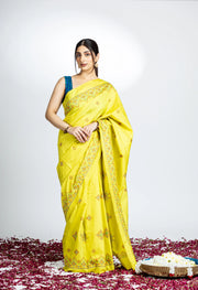 Yellow Art Silk Saree With Beautiful Kasuti Embroidery